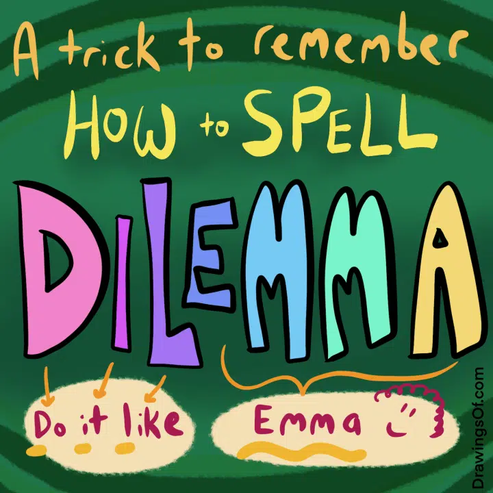 This link has a very silly way to remember the challenging spelling of "dilemma," which quite fittingly means: a hard problem.